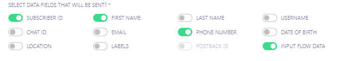 - Seleccione los campos de datos que desea enviar al sitio web seleccionado.
